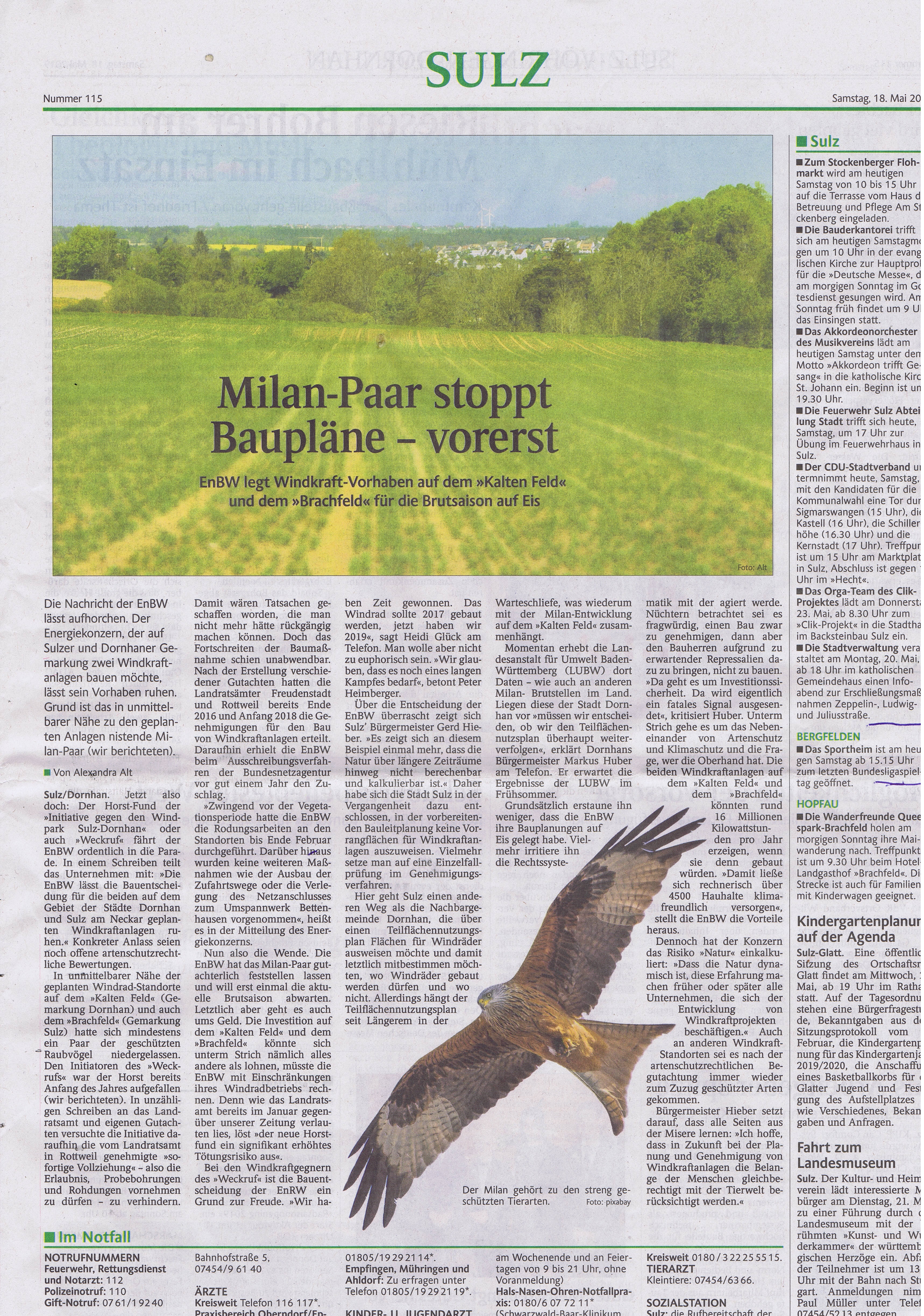 Zunächst einmal sind wir dem „Fachmann“ für Milane im Sulzer Gemeinderat dankbar dafür, dass er uns Milanzahlen genannt hat, die dafür sorgen werden, dass in Dürrenmettstetten keine neuen- oder gar Repoweringanlagen mehr gebaut werden können.